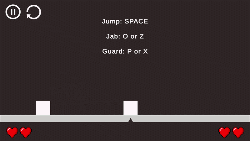 Boxy Boxer is a PvE boxing game in which players fight against an enemy AI. This project was a two-week assignment built around the theme of STATE MACHINES, which gave me the opportunity to experiment with implementing them in my code. Inspired by side-scrolling boxing games, I wanted to explore how enemy behavior could be built through different states and transitions. But due to limitations on time and art assets, I came up with this “abstract” version of a boxing game by designing the fighters as square-shaped boxers. Different colors are used to communicate combat states clearly: red for jabbing, black for guarding, and white for idle.